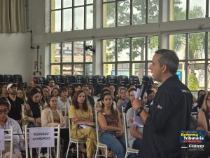 O encontro reuniu empresários, contadores, gestores, estudantes e profissionais da área fiscal interessados em entender melhor as mudanças no sistema tributário brasileiro.